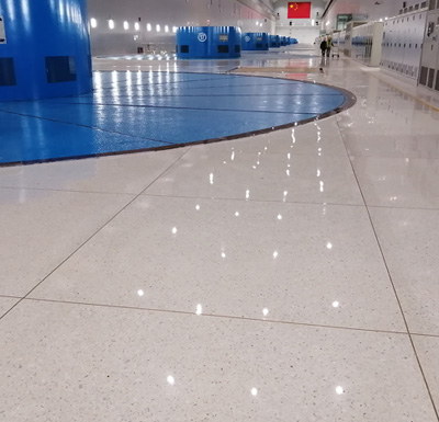 格爾木機務段新建年檢修庫在做高強升級水磨石定制前,貴段領導在進行多方面比較后,對原有設計方案進行變更為機輛高強升級水磨石地坪。貴段